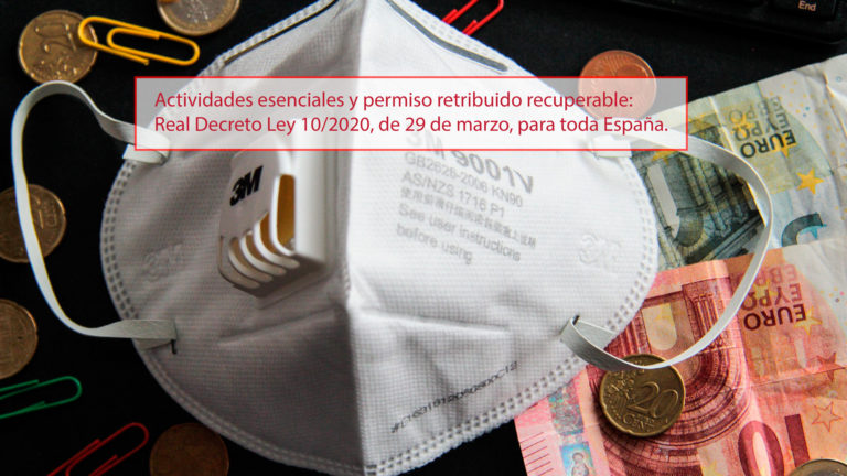 Actividades esenciales y permiso retribuido recuperable: Real Decreto Ley 10/2020, de 29 de marzo, para toda España.