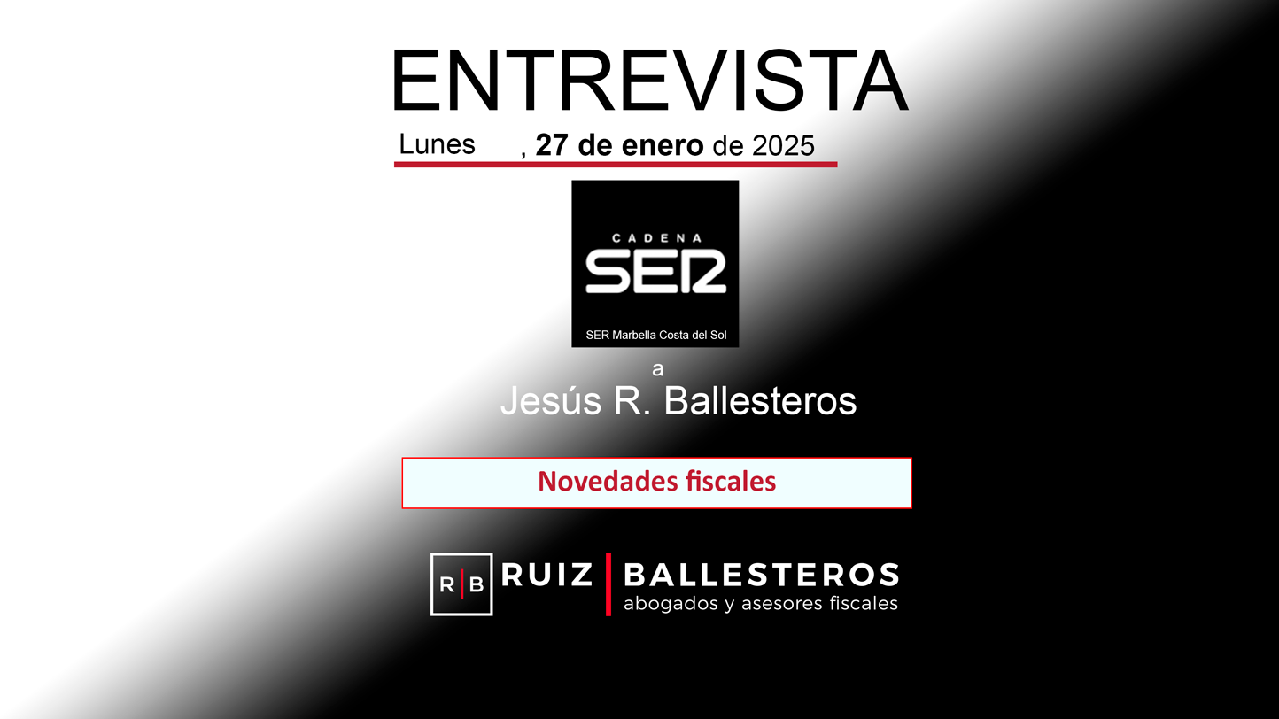 Jesús Ruiz Ballesteros analiza las novedades fiscales para 2025 en esta entrevista en el programa SER empresarios en la cadena SER Marbella Costa del Sol. Puede escuchar la entrevista completa en el siguiente enlace: https://cadenaser.com/audio/1737977251156/